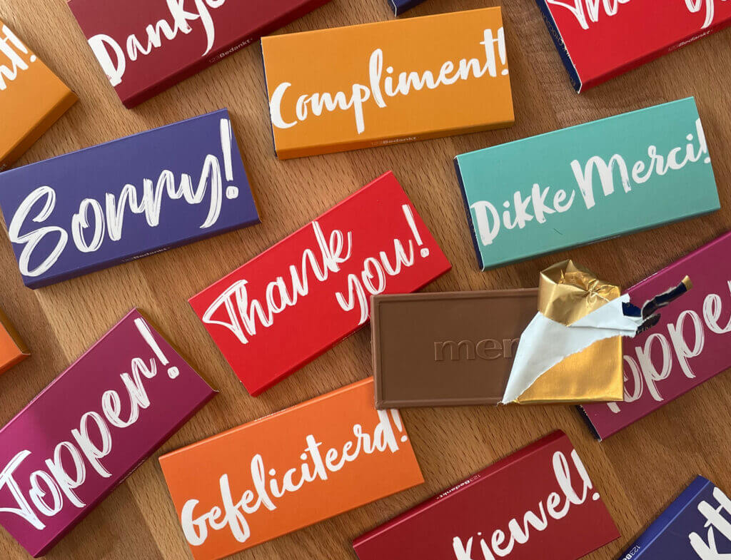 Yes! De leukste Merci, Tony’s Chocolonely en Nougat bedankjes kun je nu helemaal zelf ontwerpen. Kies een design en voeg eigen tekst en logo toe in de online editor. Zo ontwerp je zelf je eigen (zakelijke) bedankjes!
