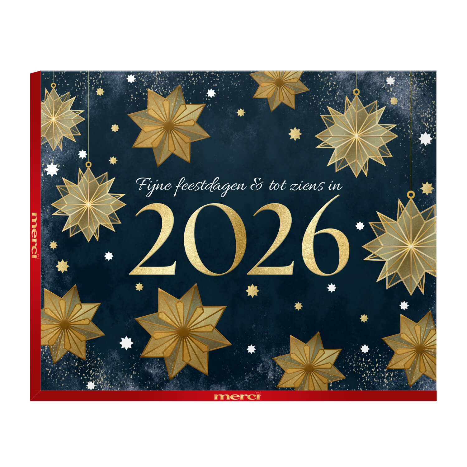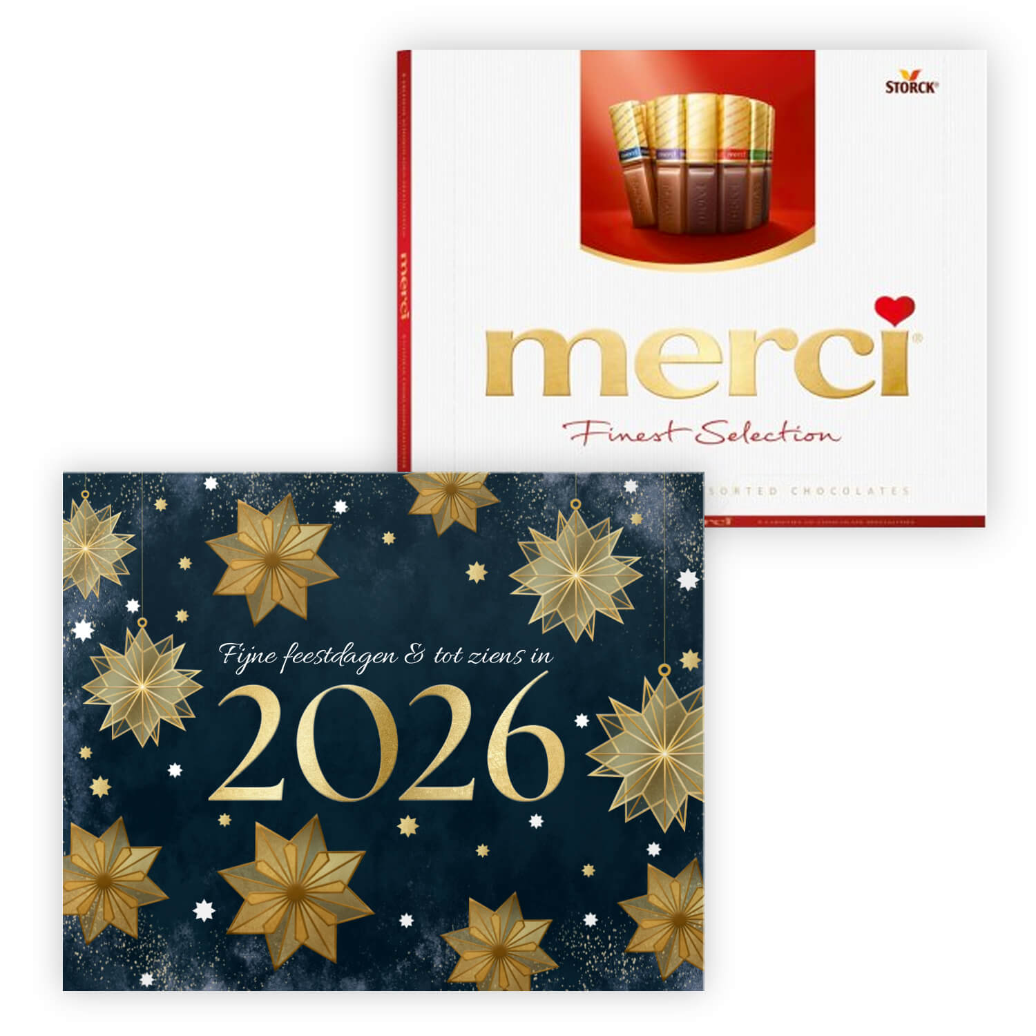 Zakelijke kerstkaart voor relaties samen met Merci chocolade