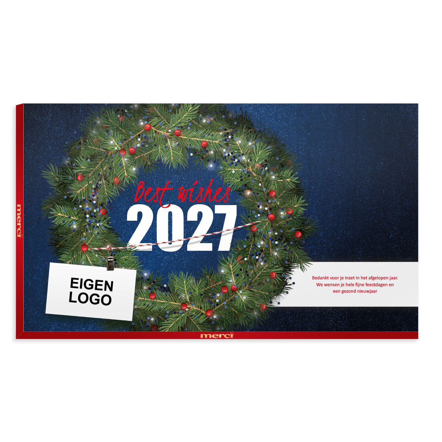 Opzoek naar 400 gram Merci chocolade bedankjes voor collega’s, medewerkers of relaties? Gevonden! Deze chocolade bedankjes met persoonlijk bedrukte kerstkaart kun je namelijk zelf gemakkelijk personaliseren. Voeg eigen tekst toe, pas kleuren aan of upload een bedrijfslogo voor zakelijke toepassingen. Zo maak je zelf de leukste bedankjes.