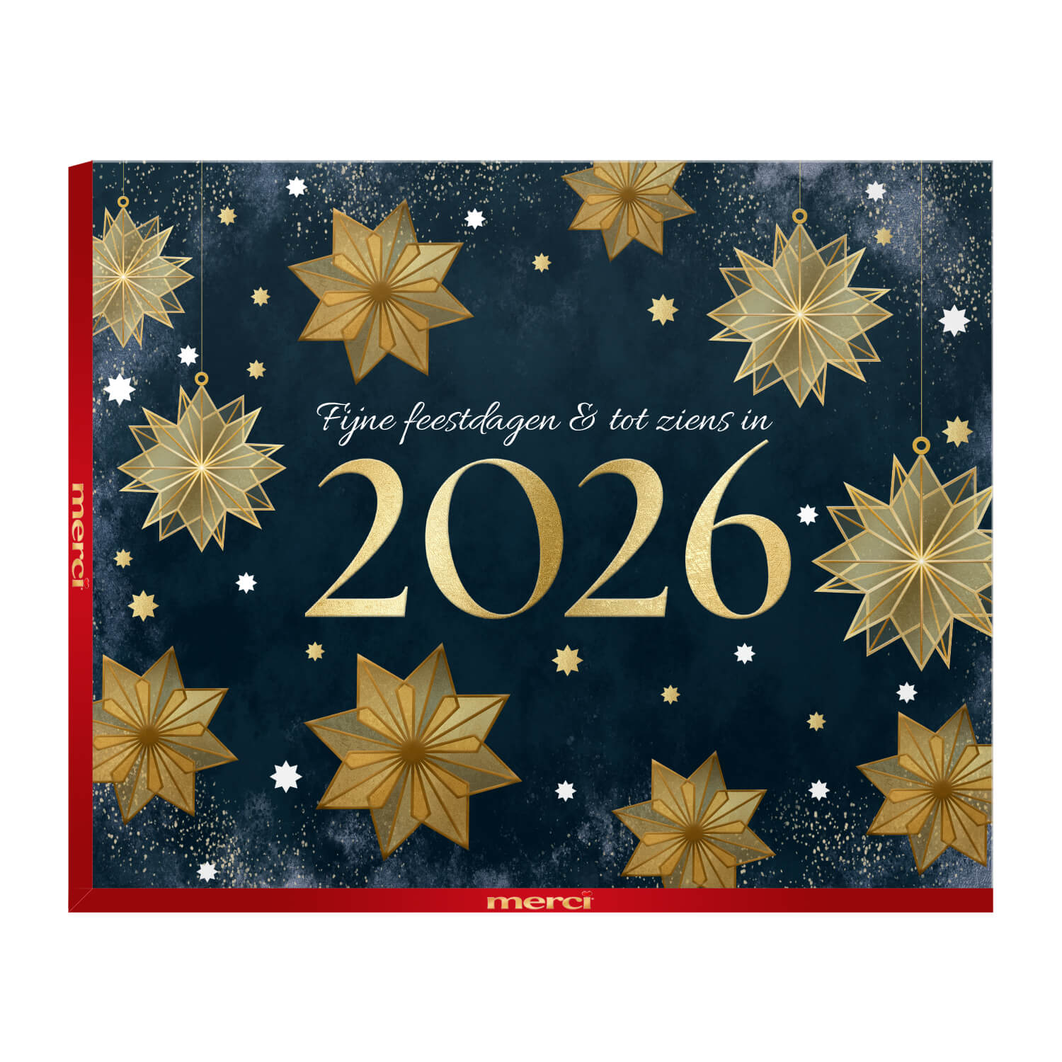 Zakelijke kerstkaart 2024 met 250 gram Merci chocolade