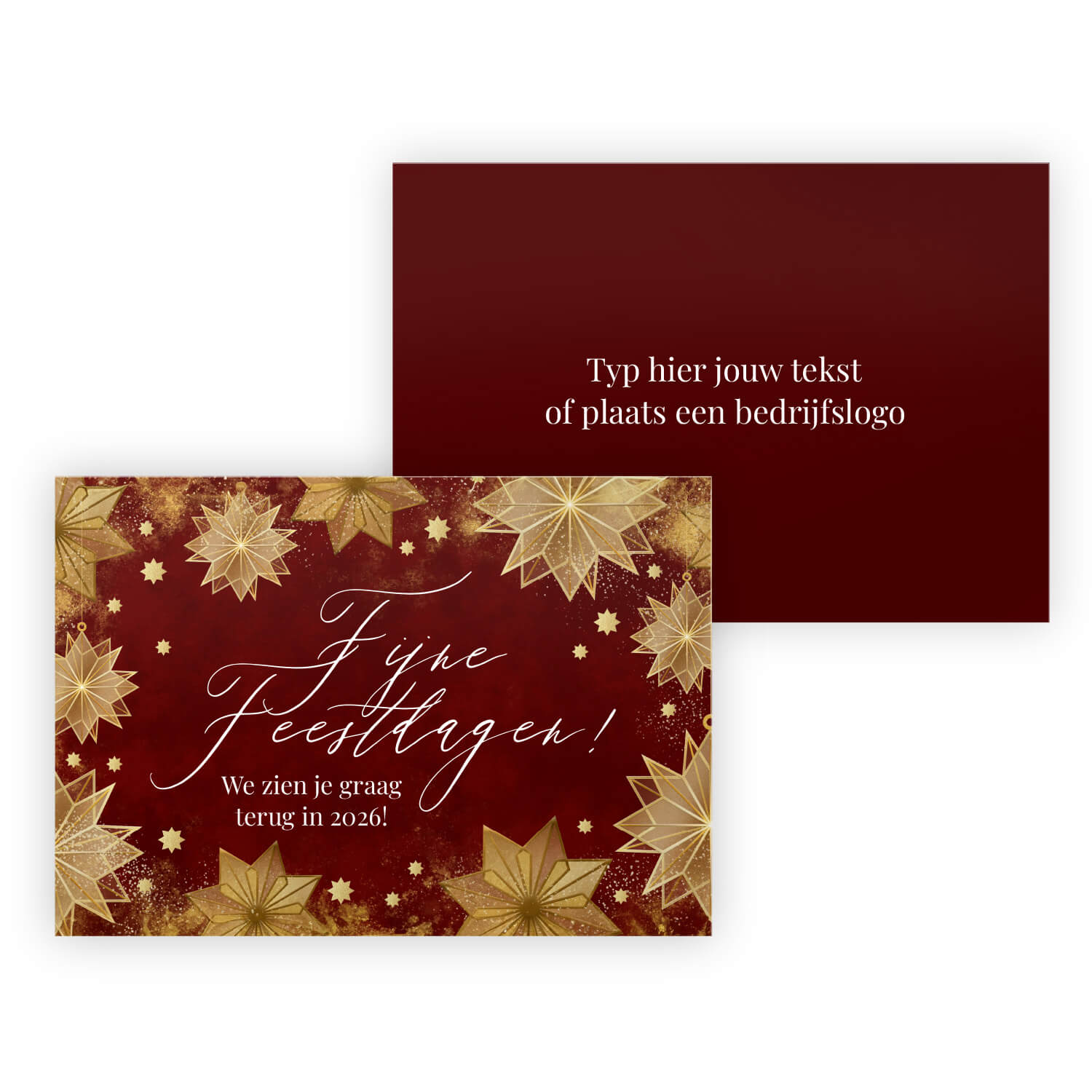 Met onze handige online editor kun je moeiteloos je unieke ontwerp samenstellen. Voeg een persoonlijke boodschap toe, kies je favoriete kleuren en zelfs je bedrijfslogo als je deze kerstbedankjes voor zakelijke doeleinden wilt gebruiken. Ook kun je ervoor kiezen om deze bedankjes direct naar (huis)adressen te laten versturen, wat je een hoop tijd bespaart.
