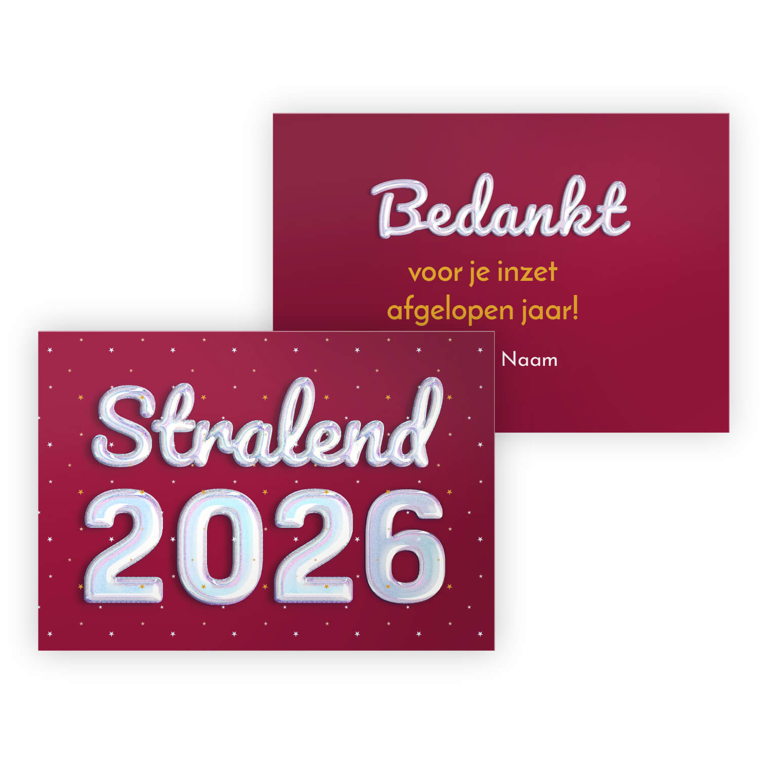 Met de Minibox 5 nieuwjaarsbedankjes kun je volledig personaliseren met je eigen tekst, foto, kleurenschema en logo. Maak gebruik van onze handige online editor en ontwerp deze schattige nieuwjaarsbedankjes helemaal volgens jouw smaak. Heb je je eigen logo om toe te voegen? Geen probleem, je kunt een jpg, png of eps-bestand uploaden. Het gebruik van een eps-bestand garandeert een haarscherpe afdruk. Bovendien kun je in de online editor een eps-logo eenvoudig in een andere kleur aanpassen, zodat je logo altijd goed opvalt op elk ontwerp. Op zoek naar de perfecte nieuwjaarsfoto voor je bedankje? In onze editor vind je een uitgebreide collectie foto’s van Pixabay die je makkelijk aan je ontwerp kunt toevoegen en bewerken. Natuurlijk kun je ook je eigen nieuwjaarsfoto’s uploaden. Zodra je tevreden bent, kun je je bestelling plaatsen!